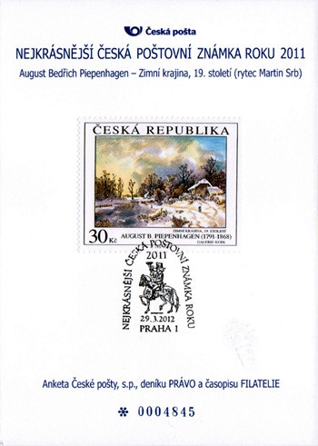 Umělecká díla na známkách – August Bedřich Piepenhagen: Zimní krajina(Pofis č. 0706), nominální hodnota 30 Kč