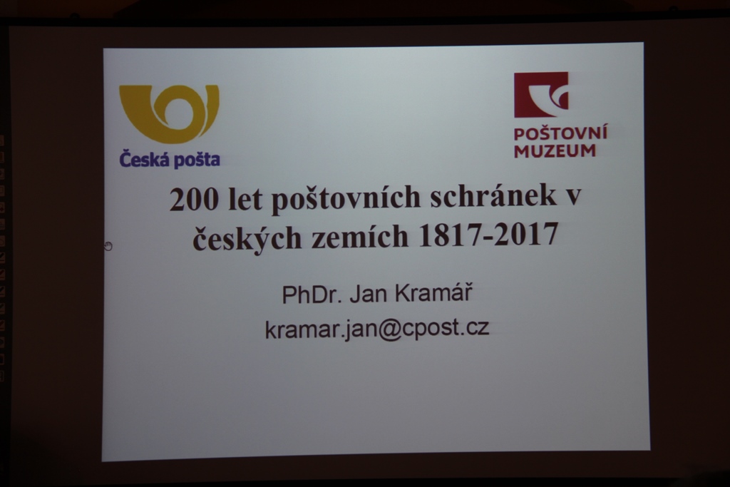 Ve čtvrtek 4.5.2017 proběhla v prostředí Klubu filatelistů, sběratelů specializovaných oborů, 00-15 Praha přednáška PhDr. Jana Kramáře „200 let poštovních schránek v českých zemích“. Velmi poučný, ucelený a systematický výklad o tom, jak se vyvíjela poštovní schránka a jakých doznala změn za více jak 200 let. Fotodokumentaci pořídil Ing. Tomáš Chudoba, jemuž patří dík za dlouholetou spolupráci.