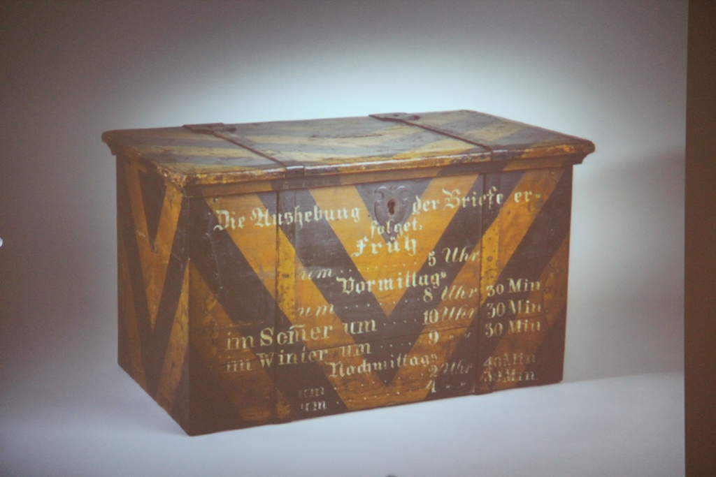 Následující ukázky jsou ze sbírek Poštovního muzea. Dále ukázky poštovních známek s tematikou poštovní schránky.