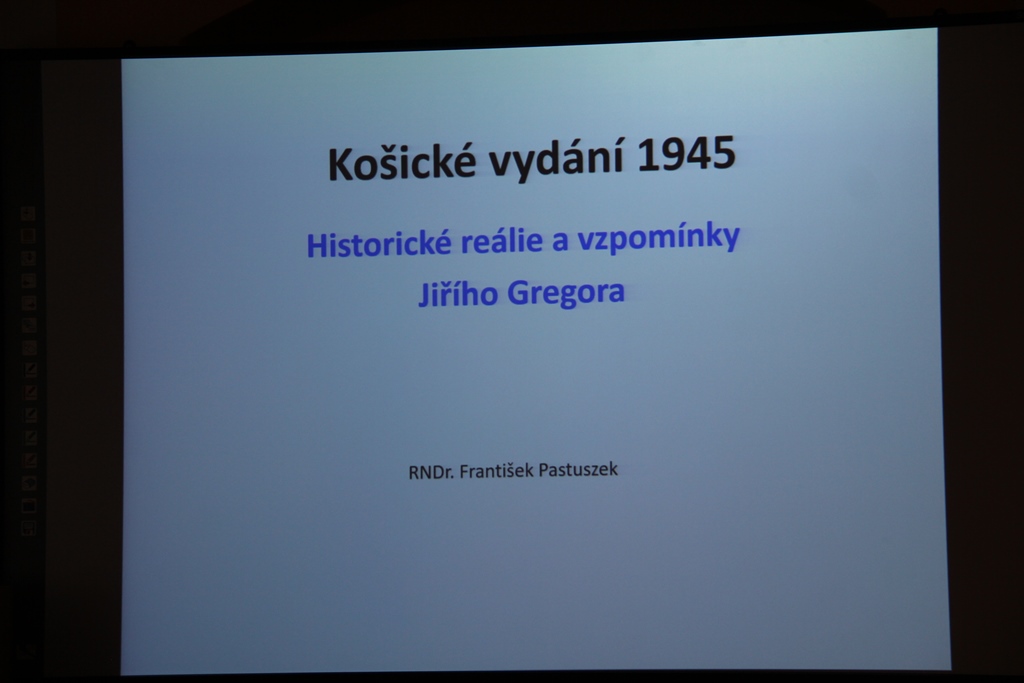 Ve čtvrtek 6.4.2017 proběhla v prostředí Klubu filatelistů, sběratelů specializovaných oborů, 00-15 Praha přednáška RNDr. Františka Pastuszka „Košické vydání 1945“. Přednášející „zarámoval“ vydání Košických známek do vojenských, politických i geografických souvislostí a popsal situaci v Košicích, jak si ji pamatuje jeho přítel (prof. Gregor). Zazněl i úryvek z vysílání rozhlasu k příletu prezidenta Beneše do Košic. Porovnal některé vzpomínky s vydanými monografiemi. Fotodokumentaci pro nás pořídil Ing. Tomáš Chudoba, jemuž patří dík za dlouholetou spolupráci.