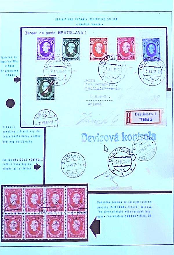 Následoval výklad dalšího politického vývoje přes vznik Československa v roce 1918 až k dramatickým událostem roků 1938 a 1939, kde jsme již byli vtaženi do filatelistické problematiky, kterou bylo příležitostné vydání československé výplatní známky s oranžovým knihtiskovým přetiskem Otvorenie slovenského snemu 18.1.1939, dva náklady této emise a dva typy přetisku. Následovalo promítání celistvostí s československými známkami jako slovenskými známkami předběžnými a souběžnými, vše též s ukázkami na dopisech. Následující ukázky přetiskových provizorií byly přehlídkou systematického přístupu specializovaného sběratele. Přednáška byla doplněna dalšími slovenskými emisemi poštovních známek a ukázkami celistvostí s příležitostnými razítky.